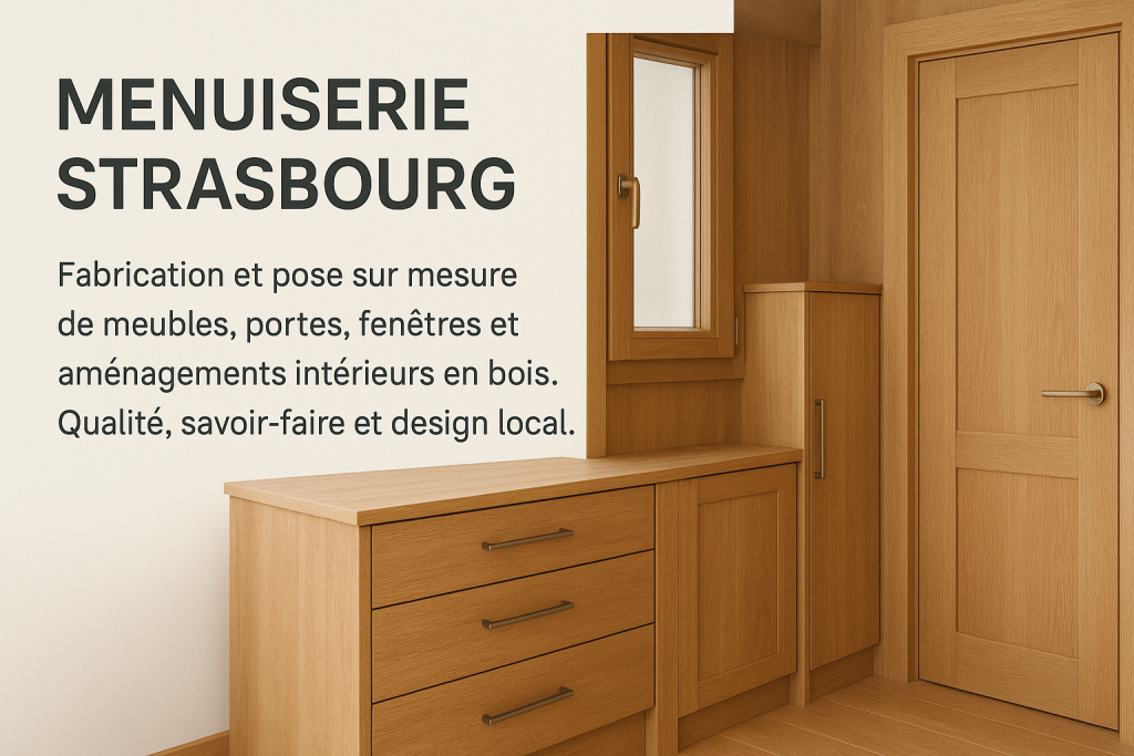Menuiserie Strasbourg — fabrication et pose sur mesure de meubles, portes, fenêtres et aménagements intérieurs en bois. Qualité, savoir-faire et design local.